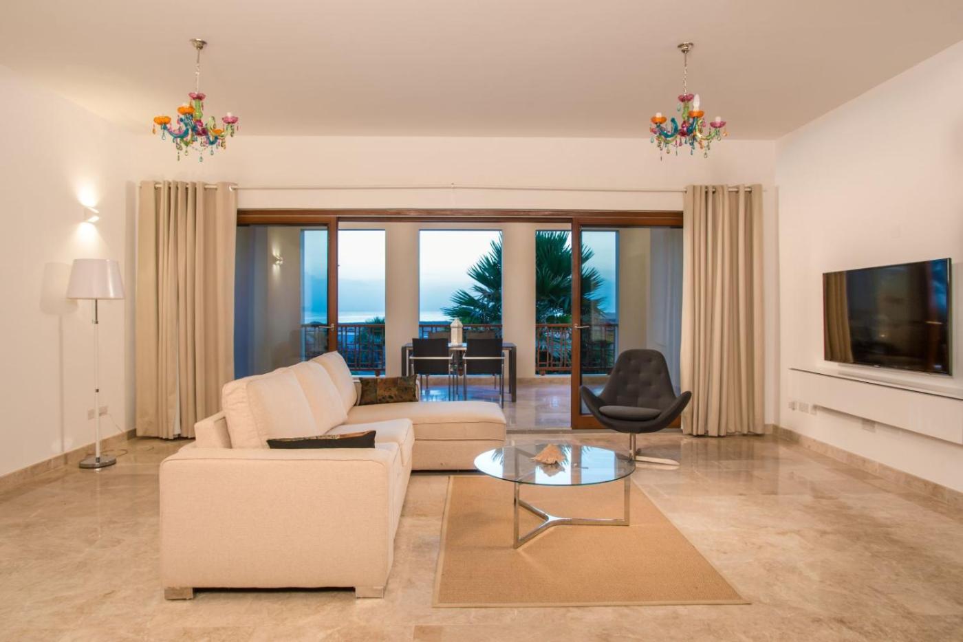 Apartment with Sea View. This apartments standout feature is the infinity pool. Boasting a private entrance, this spacious apartment also includes 1 living room, 1 separate bedroom and 2 bathrooms with a shower. In the well-fitted kitchen, guests will find a stovetop, a refrigerator, a dishwasher and kitchenware. The air-conditioned apartment offers a flat-screen TV, a washing machine, soundproof walls, a tea and coffee maker as well as sea views. The unit has 2 beds. ;