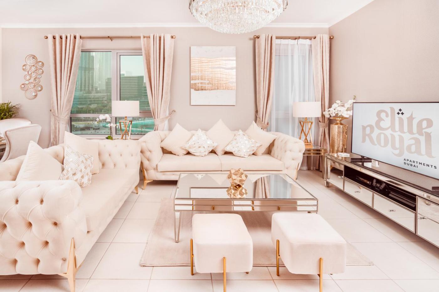 In the centre of Dubai, located within a short distance of Burj Khalifa and The Dubai Fountain, Elite Royal Apartment - Full Burj Khalifa & Fountain View - Signature - 2 bedrooms & 1 open bedroom without partition offers free WiFi, air conditioning and household amenities such as a dishwasher and coffee machine. Guests staying at this apartment have access to a balcony. The apartment provides parking on-site, an infinity pool and a 24-hour front desk.