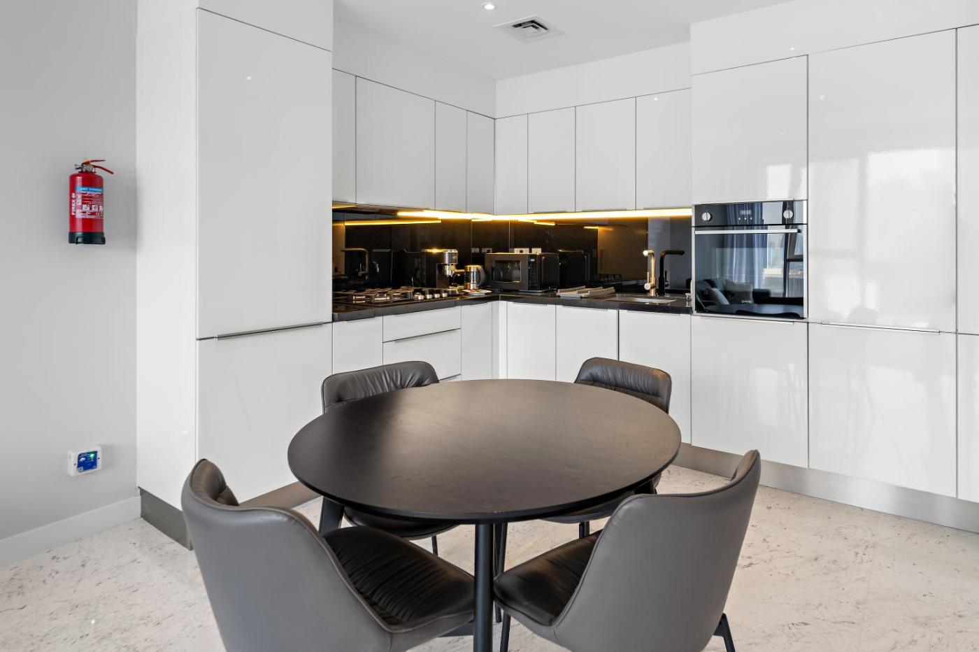 One-Bedroom Apartment. This spacious apartment comprises 1 living room, 1 separate bedroom and 1 bathroom with a shower and a hairdryer. Guests can make meals in the kitchen that comes with a stovetop, a refrigerator, kitchenware and an oven. The air-conditioned apartment provides a flat-screen TV with streaming services, a washing machine, a coffee machine, a seating area as well as city views. The unit offers 1 bed.